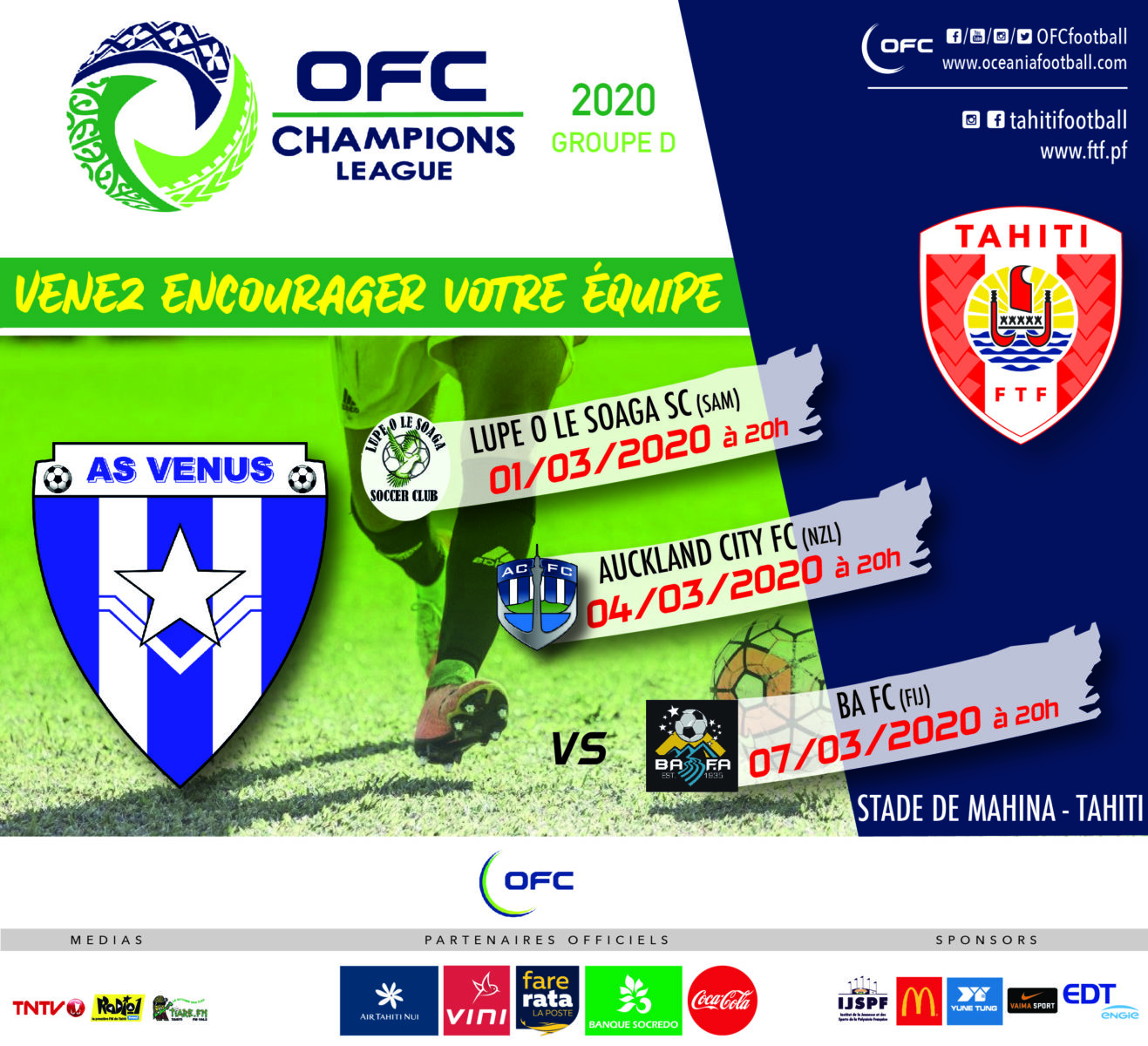 Le tournoi OFC Champions League 2020, du 1er au 7 mars, au Stade de Mahina !