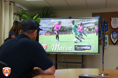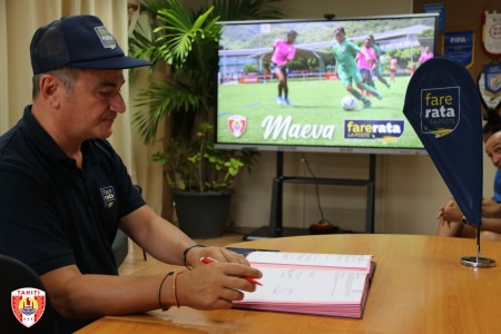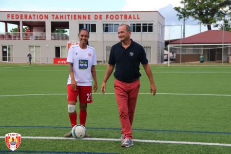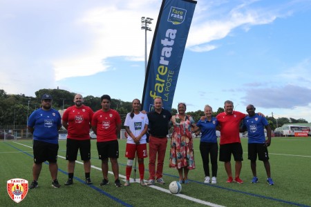 A l’issue de la signature de la convention, le coup d’envoi de ce partenariat a été lancé sur le nouveau terrain synthétique de la Fédération Tahitienne de Football entre la capitaine de la Sélection « Vahine Ura » et le Directeur Général de Fare Rata.