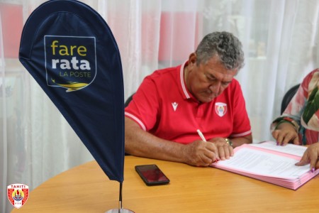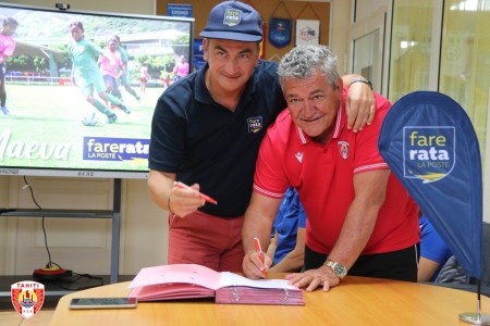Le Président de la Fédération Tahitienne de Football, Thierry Ariiotima, et le Directeur Général de Fare Rata, Bruno Arbonel, ont signé une convention de partenariat pour l’année 2022 en faveur du football féminin, le 14 décembre dernier dans les locaux de la FTF à Pirae.